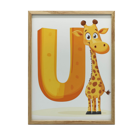 Vidám Zsiráf 'U' betűs Poszter: Gyerekszoba Dekoráció 50x70 cm Ez a bájos, 50x70 cm-es vászonkép egy mosolygós zsiráfot ábrázol egy nagy 'U' betű mellett. Tökéletes választás gyerekszobákba, de bármilyen helyiségbe vidámságot és egyedi hangulatot visz...