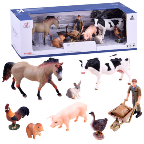 Információk A háztartásból származó, kézzel festett állatfigurák minden kis gazdának tetszeni fognak. A készletben többek között disznó, tehén, ló, nyuszi és egyebek szerepelnek. Mint egy igazi farmon, egy farmer figura figyel mindenre. A figurák műany