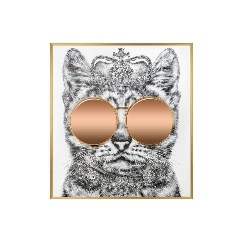 Király Macska Falikép: Modern, elegáns dekoráció tükörhatással 👑 Ez a gyönyörű, 118x130 cm-es falikép egy koronát és divatos napszemüveget viselő macskát ábrázol. A visszafogott színek és a modern nyomtatás stílusos megjelenést kölcsönöznek. A naps...
