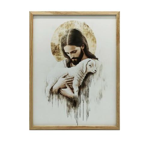 1 kép FESTMÉNY VÁSZON JÉZUSRA BÁRÁNYÁVAL NAGY NAPPALI HÁLÓSZOBA 50x70 CM