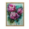Tavaszi hangulatú rózsaszín pünkösdi rózsa vászonkép - 50x70 cm Hozza el a tavasz frissességét otthonába ezzel a gyönyörű vászonképpel! A rózsaszín pünkösdi rózsák élénk színei és a nyugodt zöld háttér harmóniát és eleganciát sugároznak. A kép tökél...