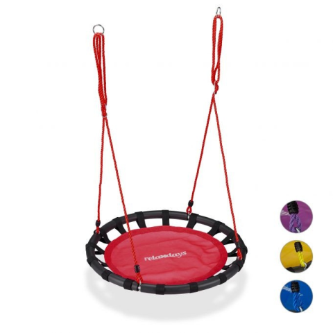 Fészekhinta 80cm piros színben Kerek hinta gyerekeknek és felnőtteknek Vicces szórakozás kicsiknek és nagyoknak Szükség esetén állítható magasságú Könnyű összeszerelés erős kötelekkel Kültéri használatra A kényelmes kikapcsolódáshoz Fészekhinta mér