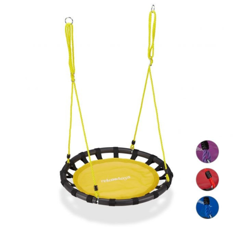 Fészekhinta 80cm sárga színben Kerek hinta gyerekeknek és felnőtteknek Vicces szórakozás kicsiknek és nagyoknak Szükség esetén állítható magasságú Könnyű összeszerelés erős kötelekkel Kültéri használatra A kényelmes kikapcsolódáshoz Fészekhinta mér