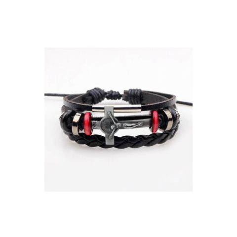 1 kép Feszület motívumos műbőr és fémötvözet férfi karkötő, állítható méret