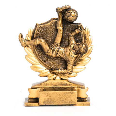 Labdarúgó, 13,5 cm magas. Az ár tartalamazza 1 db tábla gravírozását, amely a díj talpazatára kerül felhelyezésre, arany vagy ezüst színben.