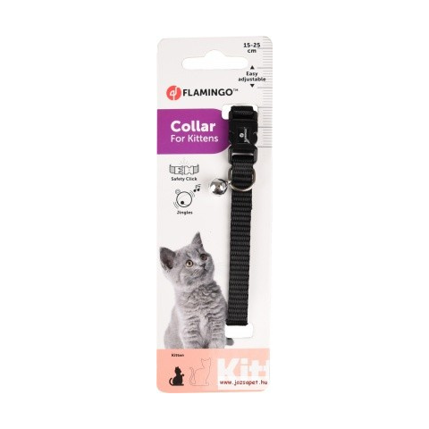 FGO Macska nyakörv fekete 15-22cm Állítható méretű nyakörv cicák számára. Könnyen kezelhető, biztonságos csattal.