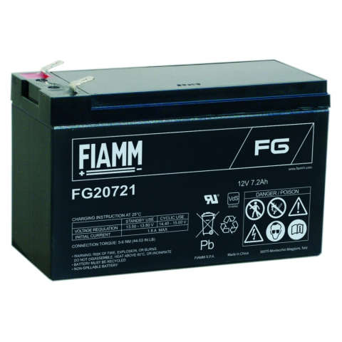 FIAMM FG20721 FIAMM akkumulátor 12V 7,2AhFeszültség: 12V Tárolókapacitás: 7 Ah Akkumulátor csatlakozó: F1 (4 75mm) Várható élettartam: 5 év