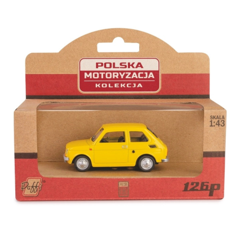 Fiat 126p sárga modellautó 1:43 autópálya és játékautó 1 kép