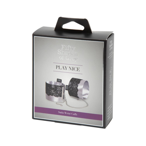 A Szürke ötven árnyalata sorozat újabb tagja kíván csatlakozni a gyűjteményedhez!Érzéki, ezüst színű szatén bilincs pár, finom, fekete csipke díszítésekkel.