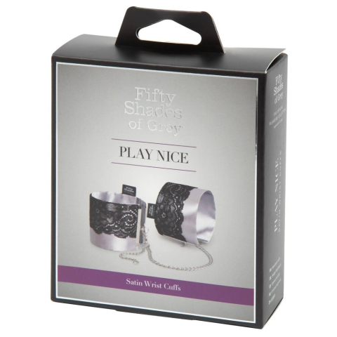 A Szürke ötven árnyalata sorozat újabb tagja kíván csatlakozni a gyűjteményedhez!Érzéki, ezüst színű szatén bilincs pár, finom, fekete csipke díszítésekkel.
