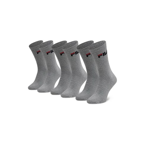 Fila tenisz zokni - hosszú - szürke (3 páras csomag) Megnevezés: 3 pár zokni Szár: hosszú (kb. lábszárközépig érő) Színek: 3 pár szürke zokni színes logóval/felirattal Logo/felirat: FILA (A csomag 3 pár feliratos/logós zoknit