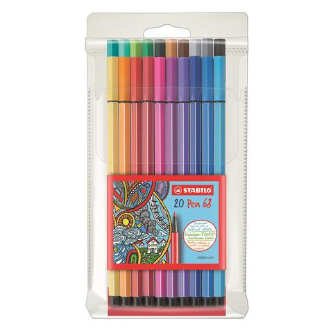 Filctoll készlet, 1 mm, STABILO "Pen 68", 20 különböző szín