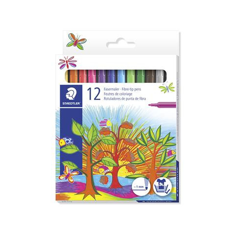 Filctoll készlet, 1 mm, STAEDTLER 325, 12 különböző szín -stabil, nyomásálló hegy -dry Safe: napokig nem szárad ki kupak nélkül -szellőző kupak -vízbázisú tinta -a legtöbb textilből könnyen kimosható -PP tolltest és kupak a hosszú élettartamért