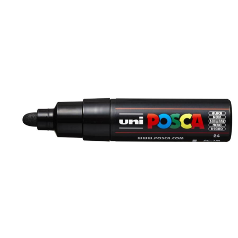 Filctoll UNI Posca PC-7M fekete Dekormarker, kreatív marker. Iskolai, művészi és ipari területen használható eszköz. Vízbázisú, nagy fedőképességű festék. Felhasználható: textil, fa, üveg, műanyag, papír, porcelán, fém, bőr és különféle ásványi ere