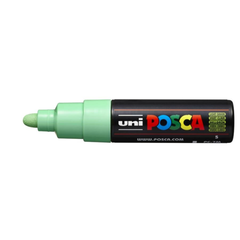 Filctoll UNI Posca PC-7M világoszöld Dekormarker, kreatív marker. Iskolai, művészi és ipari területen használható eszköz. Vízbázisú, nagy fedőképességű festék. Felhasználható: textil, fa, üveg, műanyag, papír, porcelán, fém, bőr és különféle ásvány