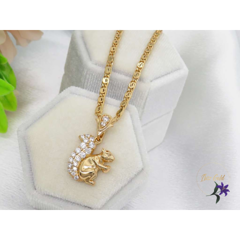 Gold Filled mókus medálos nyaklánc ,l farka gazdagon díszített cirkóna kövekkelSzin: 18KMéret: 45cm/3mm Medál:25x15mm