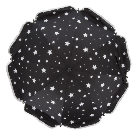 A Fillikid csillagos mintás napernyője praktikus és menő kiegészítő minden babakocsihoz. Egyszerűen felhelyezhető, így a nap erős sugarai ellen is tökéletes védelmet nyújt, miközben a csillagokkal díszített fekete design igazán trendi megjelenést biztosít