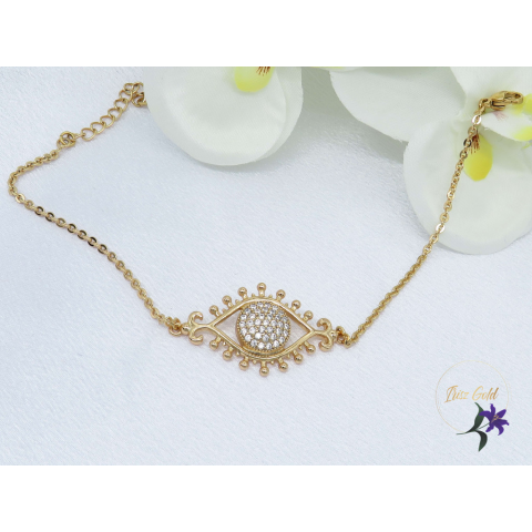 Antiallergén bőrbarát karlánc középen szem alakú köztes díszíti .Szin: 18K Méret: 17cm+3cm Köztes 3x2cm