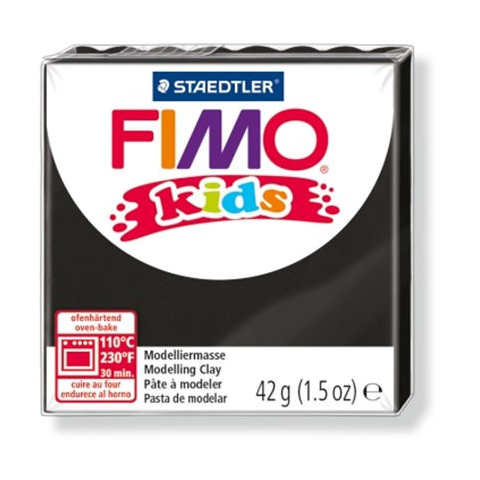 Gyurma, 42 g, égethető, FIMO Kids, fekete - kiégethető gyurma, 42g - puhítsa, amíg felveszi a kívánt formát - nem játék, nem ehető - bútorral, kárpittal stb. ne érintkezzen - max. 30 perc égetési idő 110°C-on, alufóliára, sütőpapírra helyezve Gyártó
