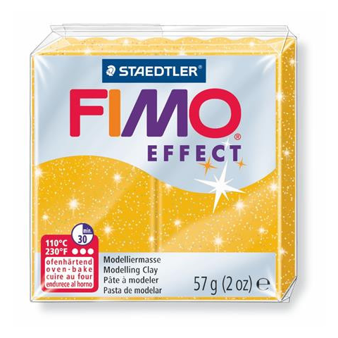 Gyurma, 57 g, égethető, FIMO Effect, csillámos arany - kiégethető gyurma, 56 gramm - puhítsa, amíg felveszi a kívánt formát - speciális alkalmazáshoz, technikákhoz - könnyen keverhető, FIMO Soft és Classic gyurmákkal is - 8 éven felülieknek ajánlot