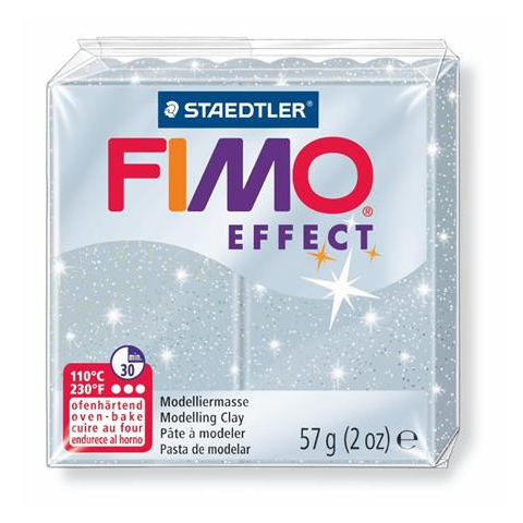 Gyurma, 57 g, égethető, FIMO Effect, csillámos ezüst - kiégethető gyurma, 56 gramm - puhítsa, amíg felveszi a kívánt formát - speciális alkalmazáshoz, technikákhoz - könnyen keverhető, FIMO Soft és Classic gyurmákkal is - 8 éven felülieknek ajánlot