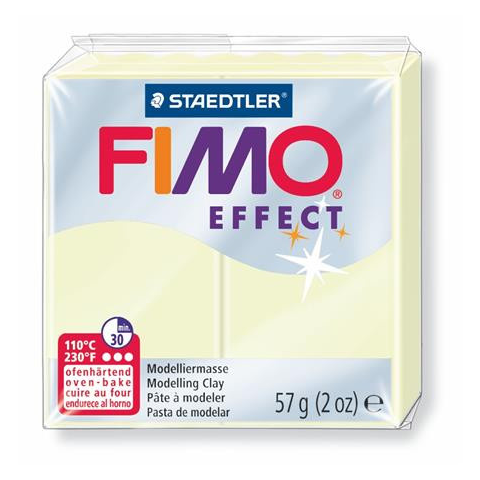 Gyurma, 57 g, égethető, FIMO Effect, sötétben világító - kiégethető gyurma, 56 gramm - puhítsa, amíg felveszi a kívánt formát - speciális alkalmazáshoz, technikákhoz - könnyen keverhető, FIMO Soft és Classic gyurmákkal is - 8 éven felülieknek ajánl