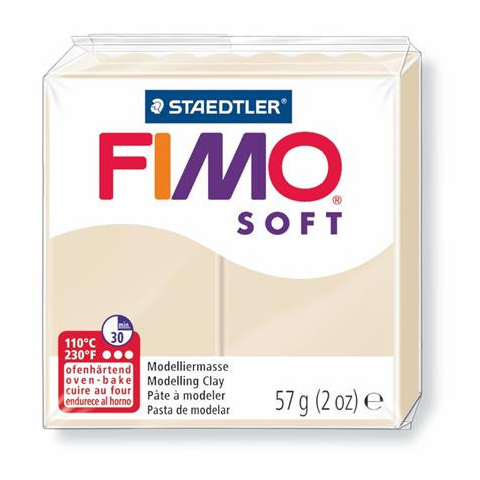 Gyurma, 57 g, égethető, FIMO Soft, szahara - kiégethető gyurma, 56 gramm - speciális alkalmazáshoz, technikákhoz - könnyen keverhető, FIMO Soft és Classic gyurmákkal is - puhítsa, amíg felveszi a kívánt formát - 8 éven felülieknek ajánlott, nem ehet
