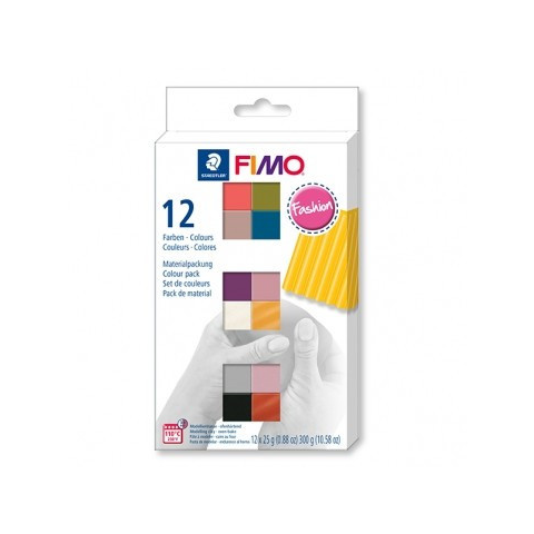 Fimo gyurmakészlet - 12X25g - Trend - Fashion színek A készlet tartalma színenként egy 25 g-os gyurmatégla a következő színekben: 40 flamingó, 57 olívzöld, 87 barnás szürke, 31 kalipszó kék, 66 püspöklila, 20 antik rózsaszín, 08 metál gyöngyház Effect, 11