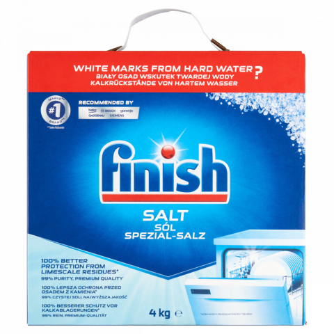 A kemény víz a rejtett részeken vízkőlerakódásokat okoz, ami csökkenti a mosogatógép mosási teljesítményét. A Finish regeneráló só 100%-kal hatékonyabb védelmet* nyújt a víz lágyításával, megakadályozva a vízkőlerakódások kialakulását a mosogatógépben. El