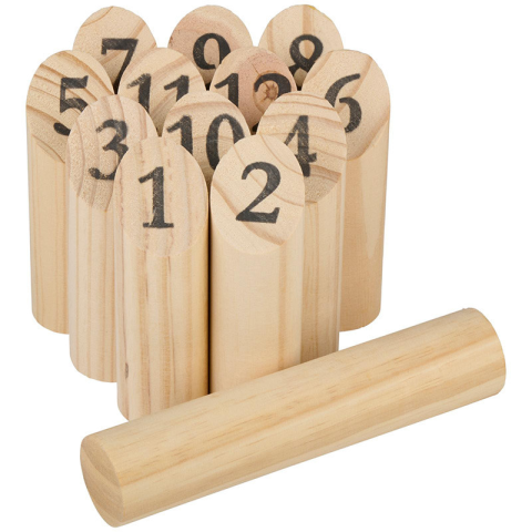 Finn kuglijáték fából.Tökéletes a dobás, koordináció és precizitás fejlesztésére.Az a játékos nyer, aki először szerez pontosan 50 pontot. Vigyázat, ha 50-nél többet szerzel, a pontszámod a felére csökken!Technikai adatok: - Anyag: fa - Magasság: 14,5 c