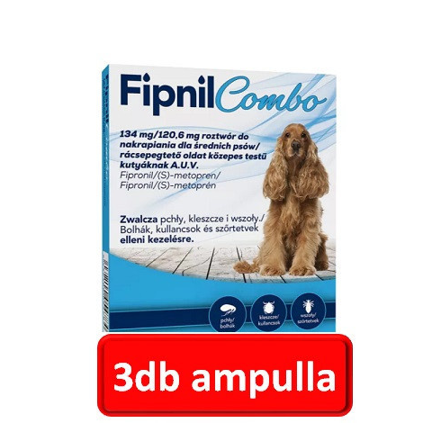 Fipnil Combo 134 mg/120,6 mg rácsepegtető oldat közepes testű kutyáknak A.U.V. Rácsepegtető oldat élősködők ellen közepes testű kutyák számára. Fipnil Combo 134 mg/120,6 mg rácsepegtető oldat közepes testű kutyáknak A.U.V. Rácsepegtető oldat élősködő