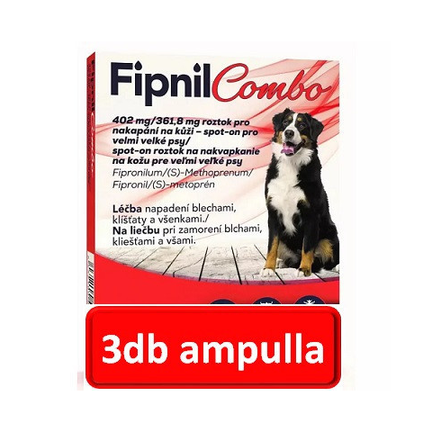 Fipnil Combo 402 mg/361,8 mg rácsepegtető oldat óriástestű kutyáknak A.U.V. Rácsepegtető oldat élősködők ellen óriástestű kutyák számára. Fipnil Combo 402 mg/361,8 mg rácsepegtető oldat óriástestű kutyáknak A.U.V. Rácsepegtető oldat élősködők ellen ó