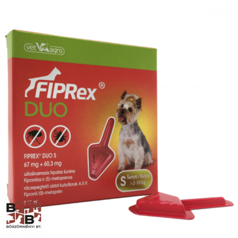 Fiprex Duo rácsepegtető oldat kutyáknak önálló bolhafertőzöttség vagy bolhákkal, kullancsokkal és/vagy szőrtetvekkel történt egyidejű fertőzöttség kezelésére. Javallat: Önálló bolhafertőzöttség vagy bolhákkal, kullancsokkal és/vagy szőrtetvekkel történ