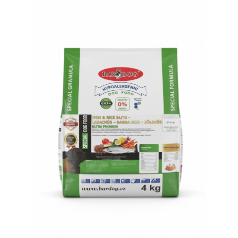 A Fish & Rice hipoallergén ultra prémium kutyatáp kíméletes, mégis tápanyagban gazdag receptúra érzékeny emésztésű kutyák számára. Különösen ajánlott azoknak az ebeknek, amelyek nem tolerálják a hagyományos húsféléket vagy bizonyos gabonákat.A lazachús kiváló minőségű fehérjét biztosít, míg a barna rizs könnyen emészthető energiát