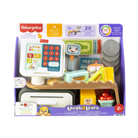Korosztály: 2 - 5 év Fisher-Price kacagj és fejlődj pénztárgép A Fisher-Price Kacagj és fejlődj pénztárgép szórakoztató és tanulságos játék, amely bevezeti a gyerekeket a vásárlás világába. A színes gombok, a pénzérmék és a mozgatható kiegészítők fejlesztik a kézügyességet, a számolási készséget és a szerepjátékot. Vidám hangokkal és dallamokkal öszt