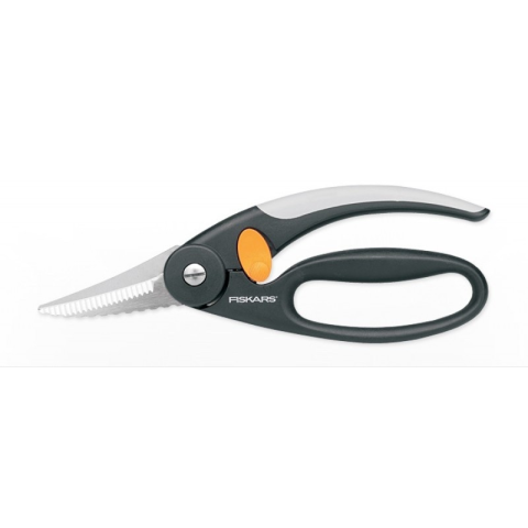 Fiskars Functional Form Halolló, 22 cm A rövid, erős, recézett pengék kiválóan alkalmasak halak pikkelyezésére, bontására és darabolására. A Softgrip markolat kényelmes fogást biztosít, jobb- és balkezeseknek egyaránt kézre áll. A biztonsági zár a hüve
