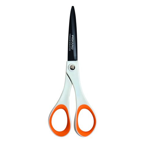 Olló, általános, tapadásmentes, 17 cm, FISKARS Non-Stick, fehér - tapadásmentes, titánium bevonatos olló - a speciális bevonat megakadályozza, hogy a ragasztóanyagok a pengéhez ragadjanak