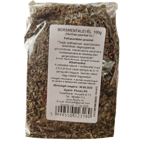 A Fitodry Borsmentalevél gyomor- és bélzavarok, emésztőszervek megbetegedése esetén, görcsökben, felfúvódás, epezavarok megakadályozására, érzéstelenítő, pangáscsökkentő, fertőzés-megelőző. Teája étvágygerjesztőnek, szélhajtónak, epeműködést serkentőként, húgyutak fertőtlenítésére, fejfájás ellen használható, vértisztító hatása van. Torokbántalmak és rekedtség ellen gargalizálni, gyulladásokra borogatásként, valamint i