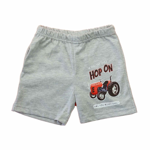 Fiú pamut rövidnadrág Fedezd fel a minőségi magyar termékek világát ezzel a traktoros mintás kisfiú pamut rövidnadrággal! A szürke alapszín modern és praktikus, a vidám traktor minta pedig garantáltan elnyeri a kisfiúk szívét. A rövidnadrág egyik oldalán