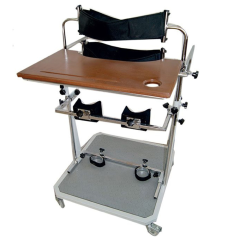 Termék jellemzői: - páciens függőleges helyzetben tartása - laminált vizsgálóasztal - sarok-, térd-, combcsont- és csípőtámaszok - betegkötő öv - fékezhető kerekek - fém kiegészítők, melyek rozsdásodás és külső hatások ellen krómozottak - igény szerint tö