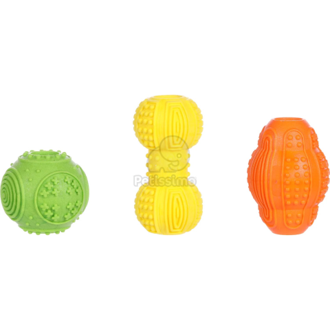 Flamingo Haspy gumijátékok - labda, súlyzó, amerikai focilabda 1 db