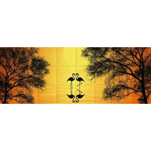 24 darab, 25x25cm méretű, nyomtatott műbőr falpanelekből kialakított falvédő.