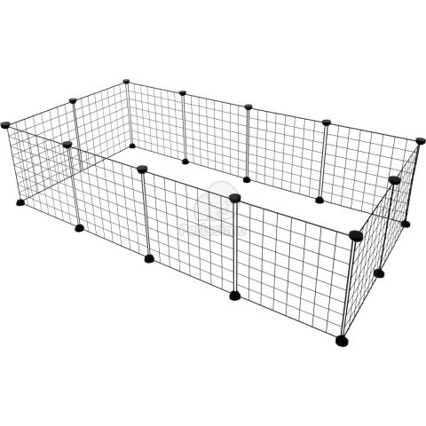 Jellemzők: - Anyag: fém, elektrosztatikus bevonattal - Vízszintes, függőleges vastagság és a drótok közötti távolság: 4 / 2 / 41 mm - Tengerimalacok és nyulak számára alkalmas nyulak esetében ajánlott legalább egy extra panel hozzáadása a magassághoz. - 24 műanyag csatlakozóval rendelkezik, amelyek lehetővé teszik a ketrec különböző formákba való összeállítását. - Magasságban és felületben bővíthető a bővítő készlettel (nem tartozék). - Könnyen ös