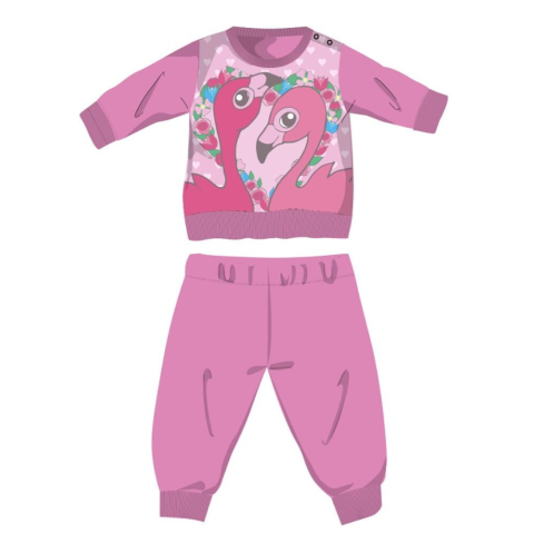 1 kép Flamingó téli pamut baba pizsama - interlock pizsama - rózsaszín - 86