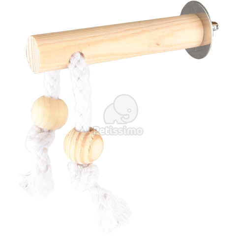 Fából készült ülőrúd kötéllel és golyókkal kalitkában tartott madarak számára - Extra helyet teremt a kalitkában. - Könnyen rögzíthető szárnyas anyával. - Beltéri használatra ajánlott. Mérete: 10 cm Anyaga:  Fenyőfa és pamut kötél Figyelmeztetés: Nem gyermekjáték. 3 évesnél fiatalabb gyermektől elzárva tartandó! Játék közben mindig tartsa felügyelet alatt kedvencét és ne engedje, hogy sérült vagy törött játékkal tovább játsszon! Használat