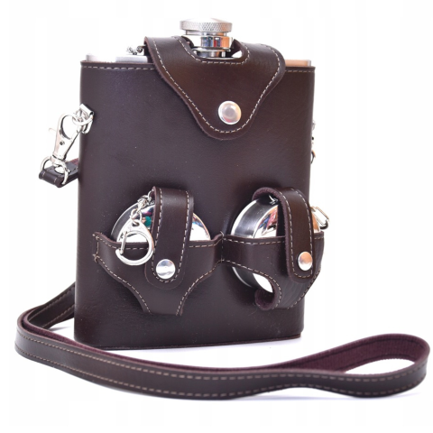 Flaska szett bőrtokban 2 db kulcstartó pohárral kulcstartó 1 kép