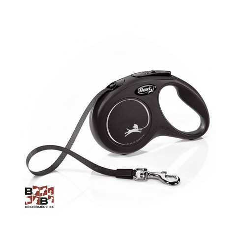 flexi New Classic szalagpóráz, M, fekete, 5 m