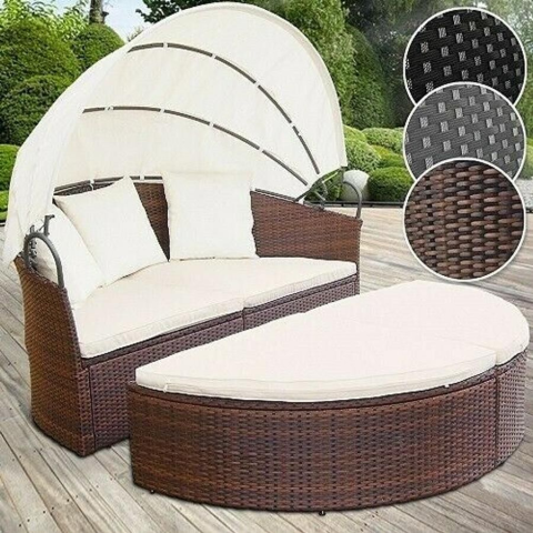 1 kép Florida luxus rattan napozóágy, napozó sziget - 3 színben - Fekete
