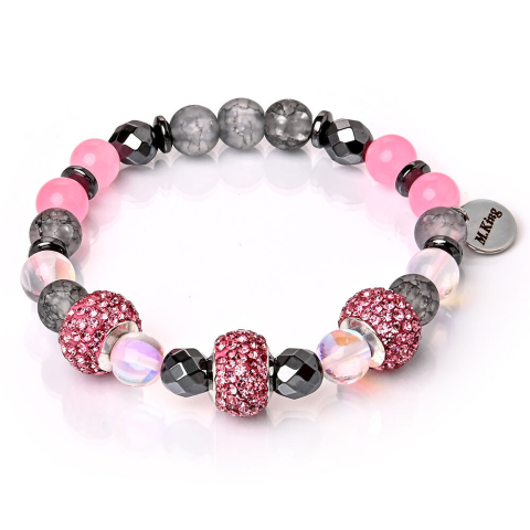 1 kép Flowers in Pink – Jáde, hematit és hegyikristály ásvány karkötő dobozban