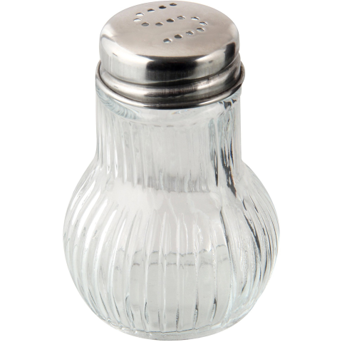 Sószóró, 8 cm, üveg test rozsdamentes acél szórófejjel.